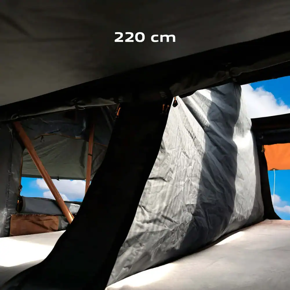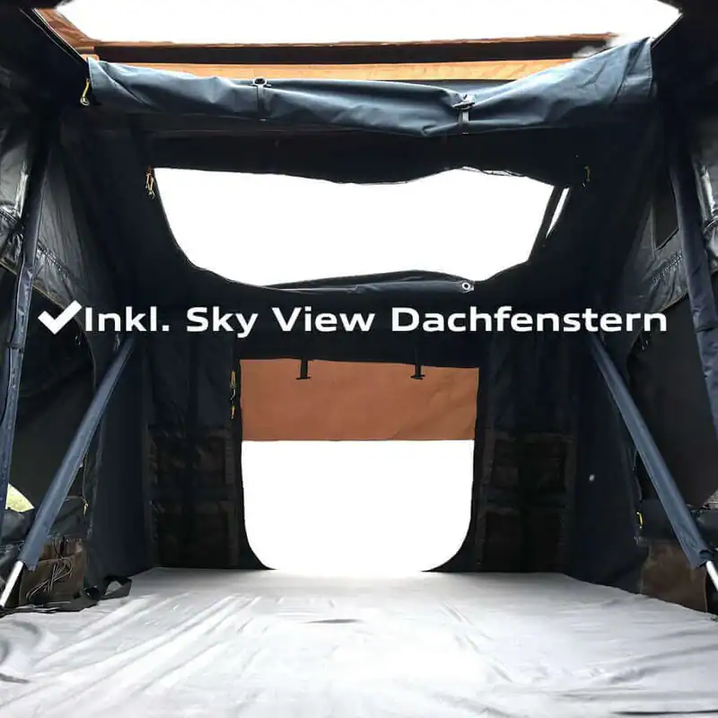 • Erweiterbar: Mit einem optional erhĂ€ltlichen Vorzelt kannst du deinen Wohnraum erweitern – ideal fĂŒr lĂ€ngere Aufenthalte oder als Umkleidekabine.