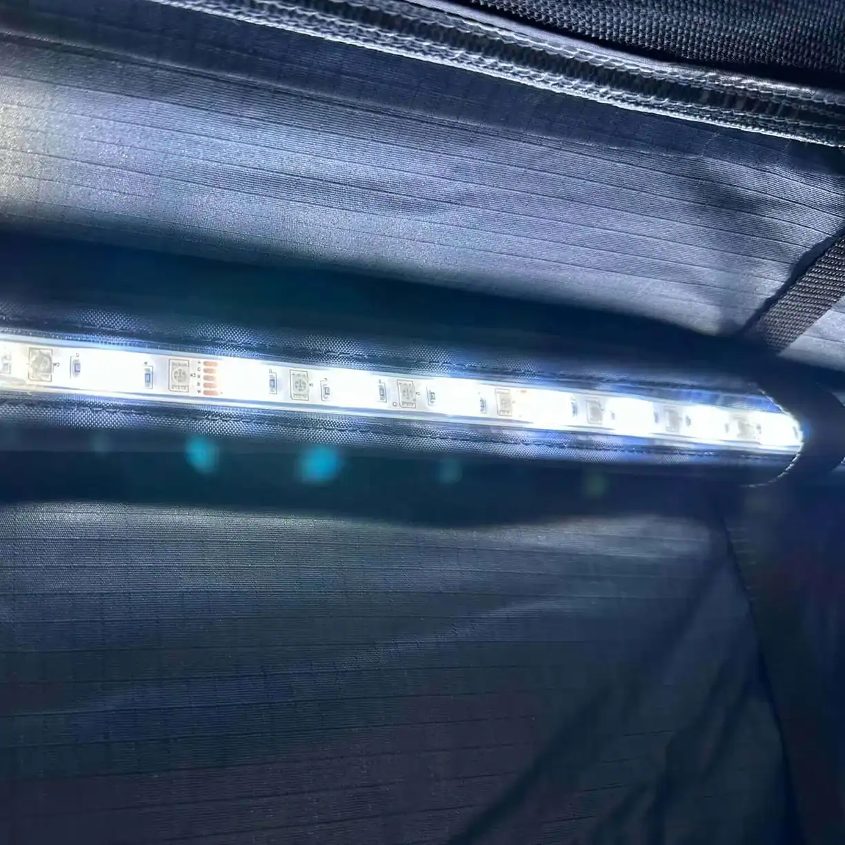 • Stimmungsvolle LED-Leuchten: Erschaffe mit den integrierten, dimmbaren LED-Leuchten dein persönliches Ambiente im Dachzelt.